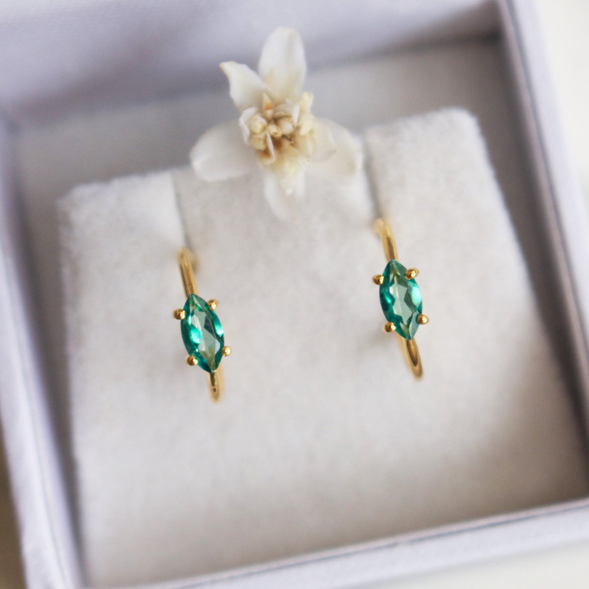 Handcrafted in 14k gold vermeil, featuring marquise-cut fern green topaz stones. Lightweight with a high-polish finish, ensuring comfort and enduring shine.
