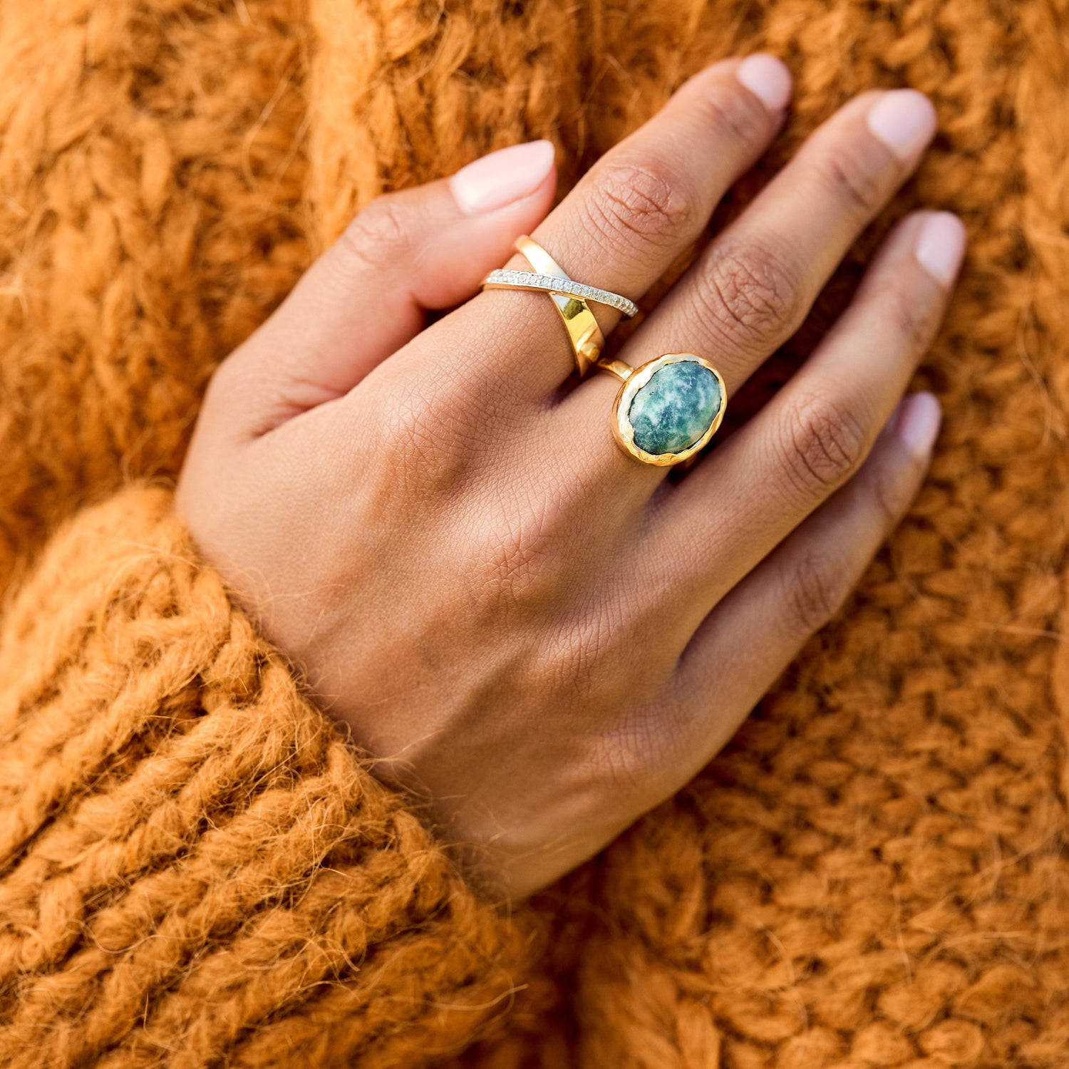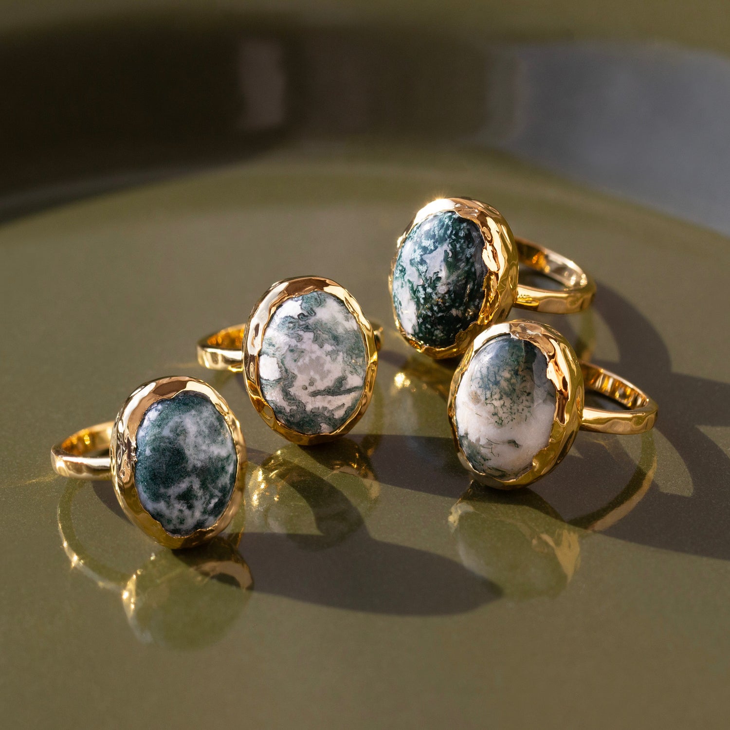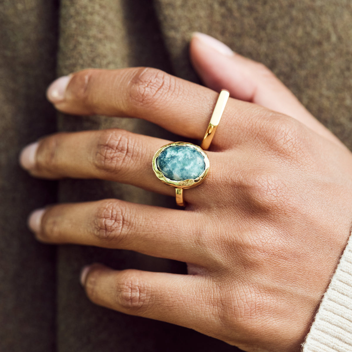 Handcrafted in 14k gold vermeil, featuring a natural snowflake jade gemstone. Each stone is unique, ensuring no two rings are alike. Finished with a high-polish shine for durability and elegance.