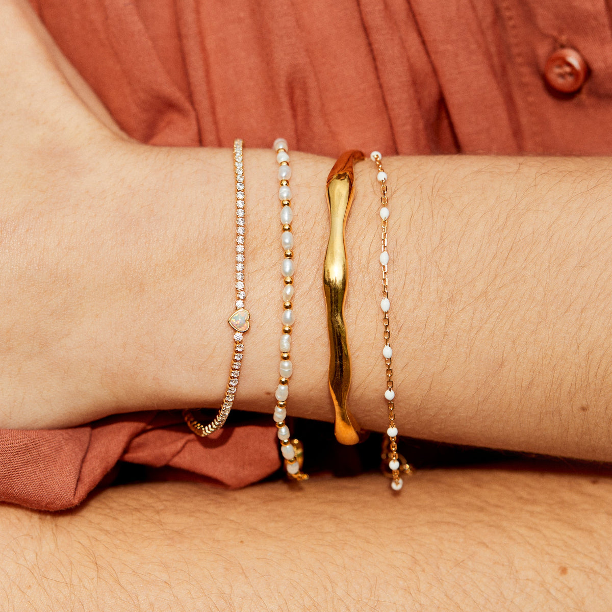 Handcrafted in 14k gold vermeil, featuring a heart-shaped opal gemstone and a row of cubic zirconia stones. Polished to a radiant shine for durability and daily wear.