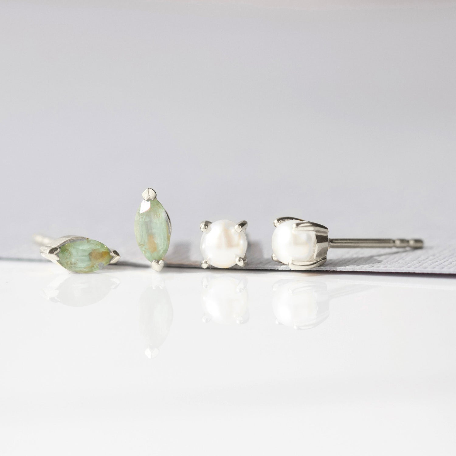 These Pearl Stud Earrings by Carrie Elizabeth in sterling silver are a timeless jewelry box essential. Simple, sophisticated, and perfect for everyday wear, these earrings bring understated elegance to any look. Pearls are believed to symbolize luck, wealth, and abundance, making them both meaningful and stylish.
