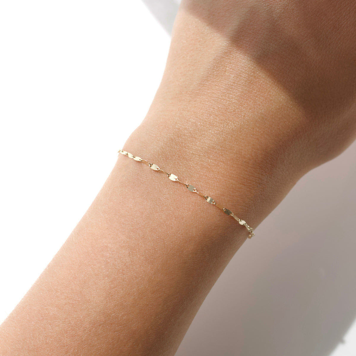 This Petal Bracelet by Carrie Elizabeth in 9k solid yellow gold is the perfect piece of sparkly arm candy. Its timeless design ensures durability and everyday wearability, while its delicate yet striking aesthetic makes it ideal for pairing with meaningful Treasured Charms. A must-have addition to any jewelry collection.