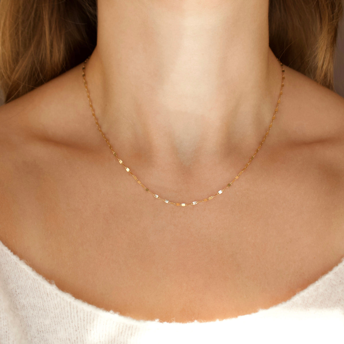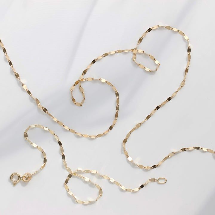 This Petal Chain by Carrie Elizabeth in 9k solid yellow gold is a simple yet sparkly addition to your jewelry collection. Designed to last a lifetime, it is perfect for everyday wear and pairs beautifully with the meaningful Treasured Charms. Available in multiple lengths, it is a versatile piece for layering or wearing solo.