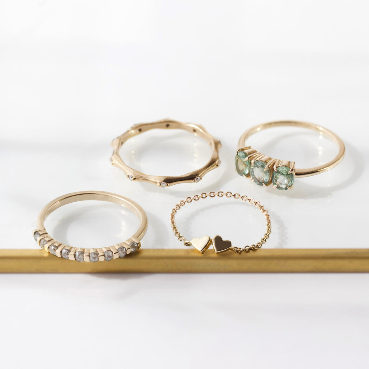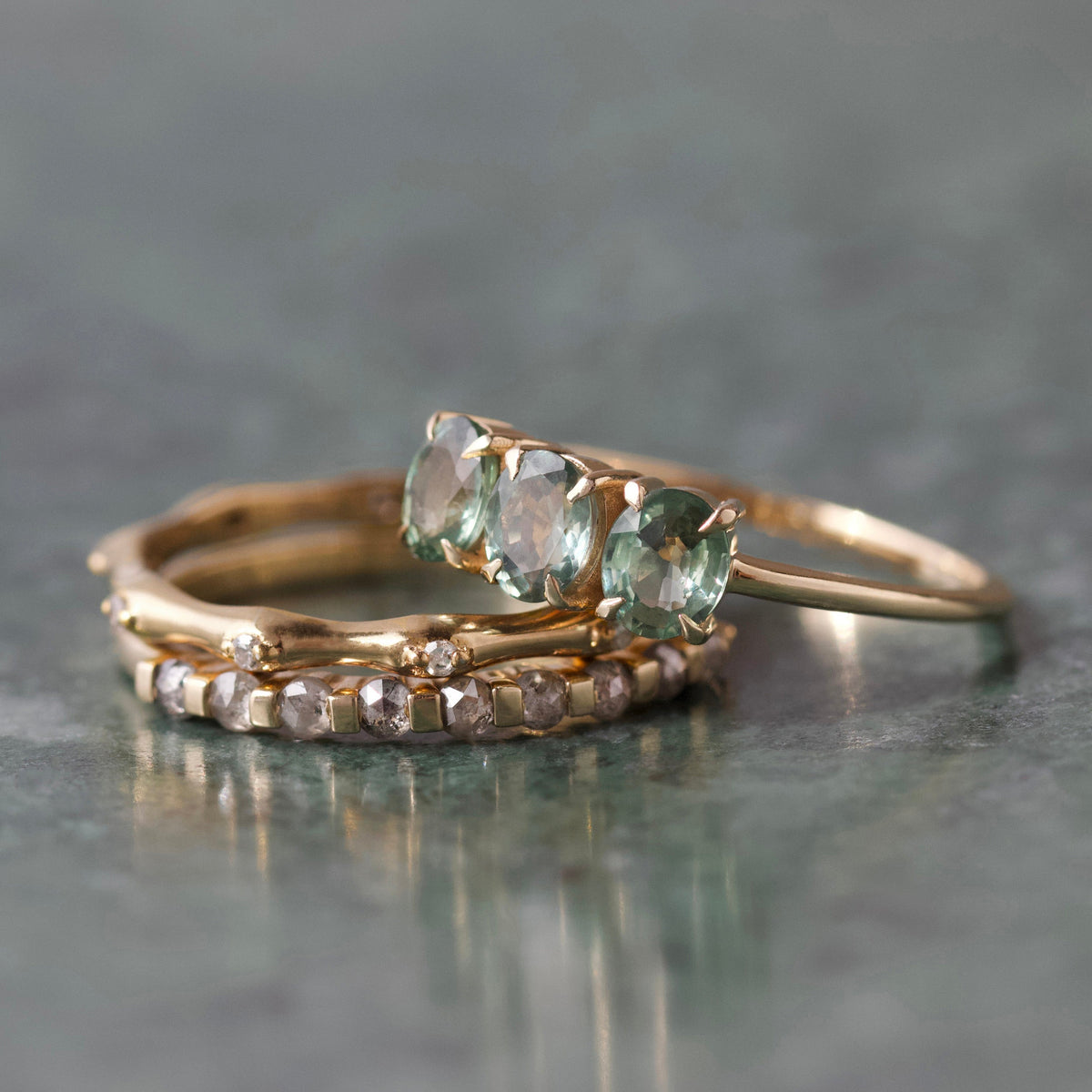 This Salt & Pepper Diamond Half Eternity Band by Carrie Elizabeth exudes vintage charm with a celestial twist. Adorned with salt and pepper diamonds that glisten in delicate shades of grey and white, this ring captures timeless elegance. Perfect for everyday wear or special occasions, it’s a piece that adds sparkle to your jewelry collection. Diamonds symbolize purity and cleansing energy, making this ring both meaningful and stylish.