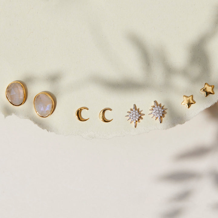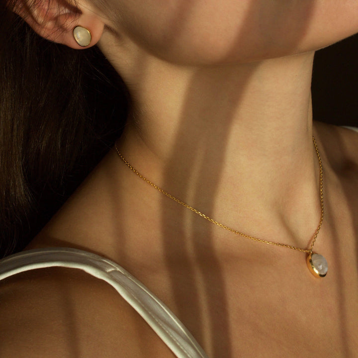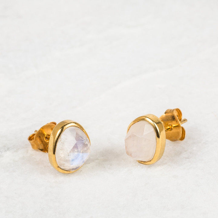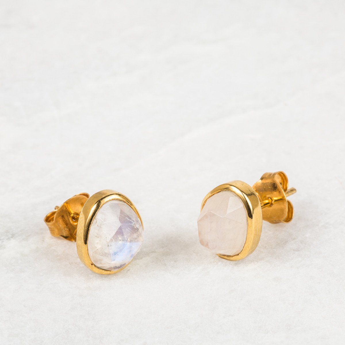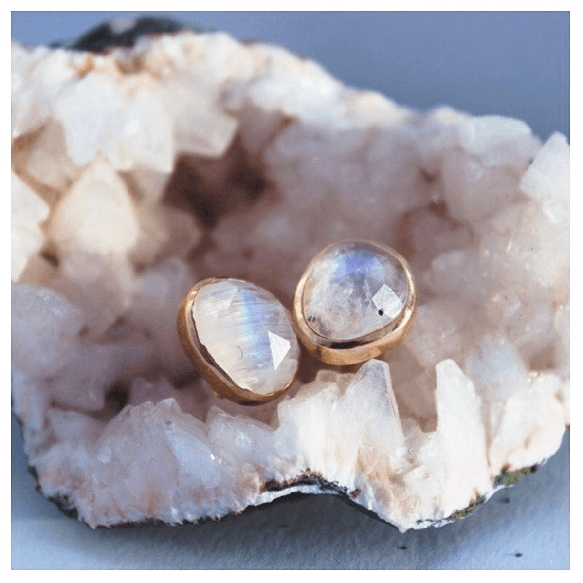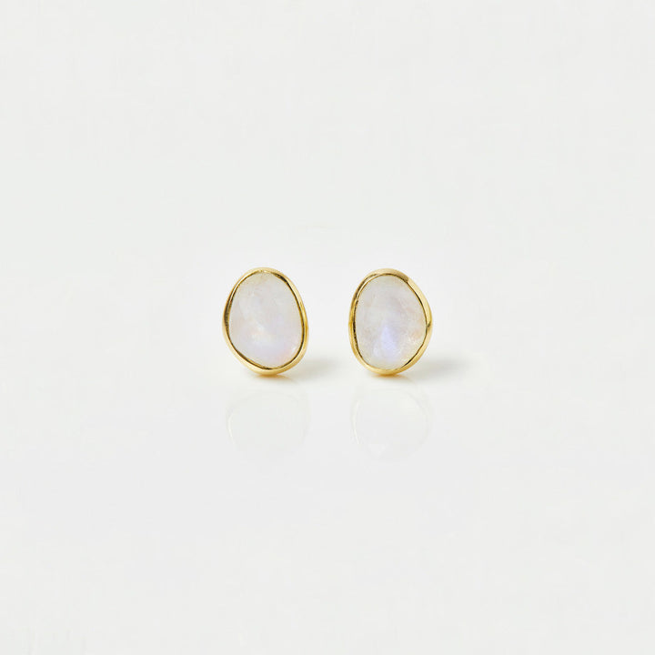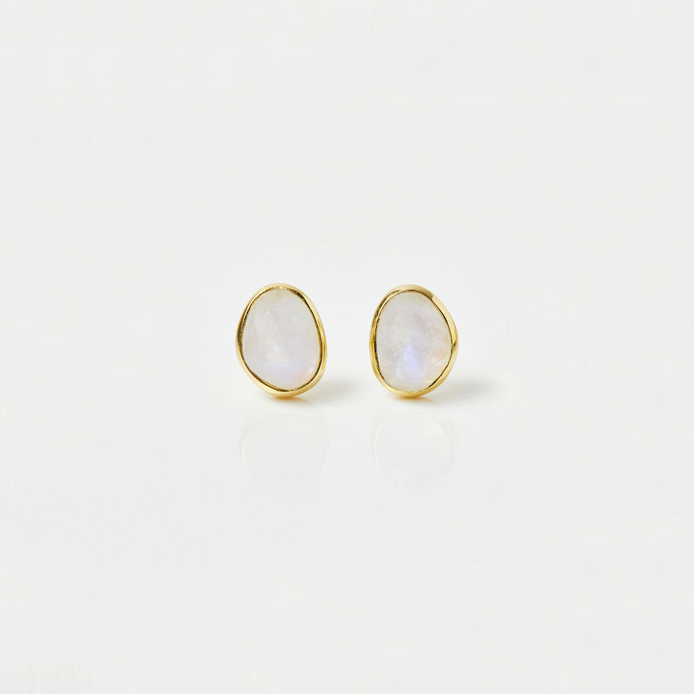 Crafted in 14k gold vermeil with hand-cut natural moonstones. Each stone is unique, ensuring no two pairs are alike.