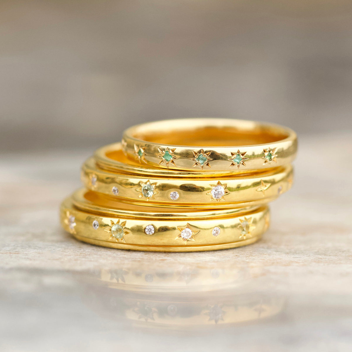 Crafted in 14k gold vermeil with ethically sourced emeralds star-set into the band. Each piece is meticulously designed to ensure lasting quality and beauty. Delivered in elegant packaging, ideal for gifting or safekeeping.