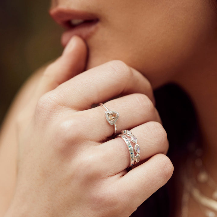 This Simple Star Set Emerald Band by Carrie Elizabeth is a stunning update to the brand's bestselling design, now featuring vivid emeralds star-set into a sterling silver band. With its simple yet captivating aesthetic, this piece is perfect for stacking or wearing alone. The emeralds add a touch of cosmic energy and symbolize unity, compassion, and unconditional love, making it both beautiful and meaningful. A versatile addition to any jewelry collection, it pairs effortlessly with your other Carrie Elizabeth favorites.