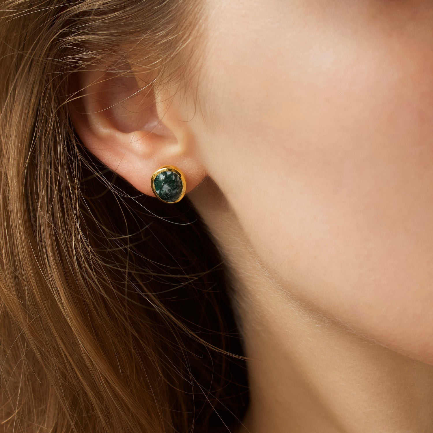 These Snowflake Jade Stud Earrings by Carrie Elizabeth are beautifully bold with a molten, organic design. Each pair features unique shapes, colors, and patterns, ensuring no two are alike. Known for its soothing properties, jade is believed to radiate peace and alleviate stress, making these earrings a meaningful addition to your jewelry collection.