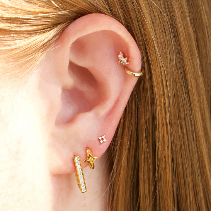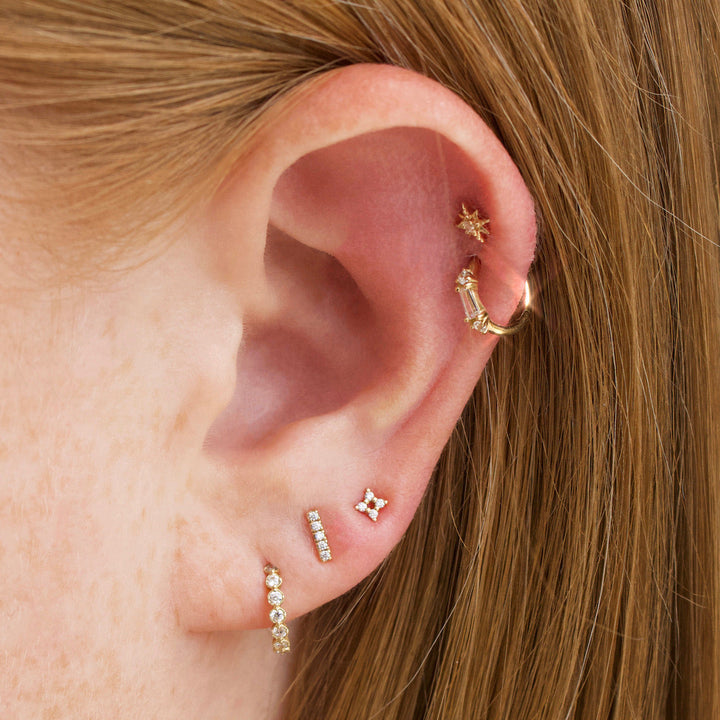 This Stardust Flat Back Earring by Carrie Elizabeth combines dainty elegance with versatile functionality. Designed for everyday wear, it’s perfect for stacking and mixing in specialist piercings, including lobe, conch, helix, and tragus. This timeless piece is a must-have for creating a unique, personalized ear party.