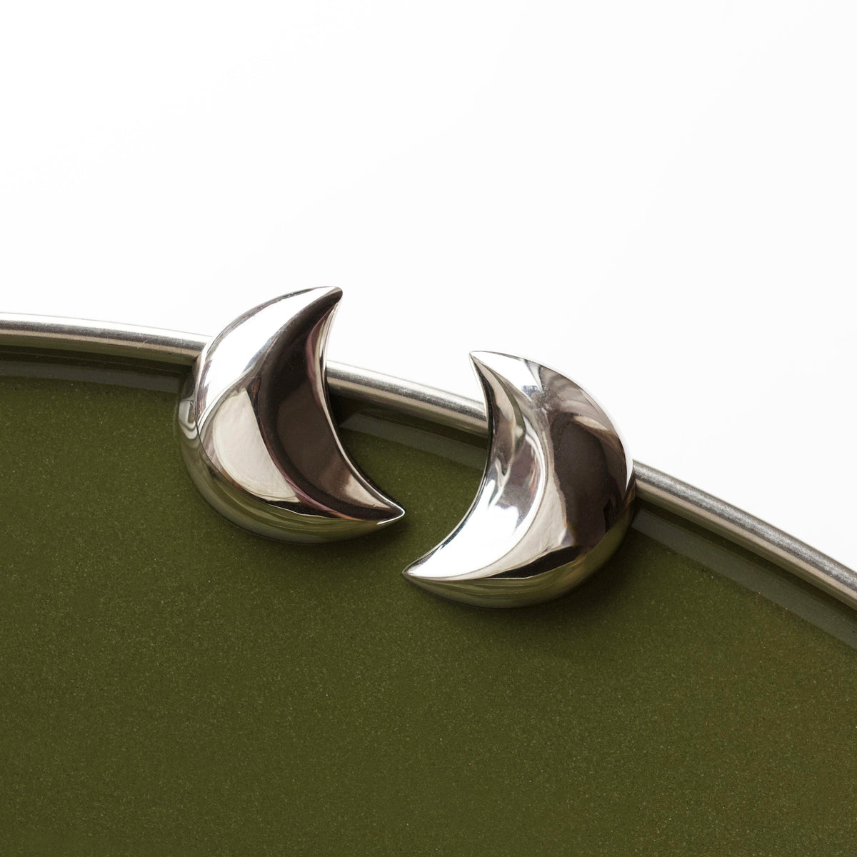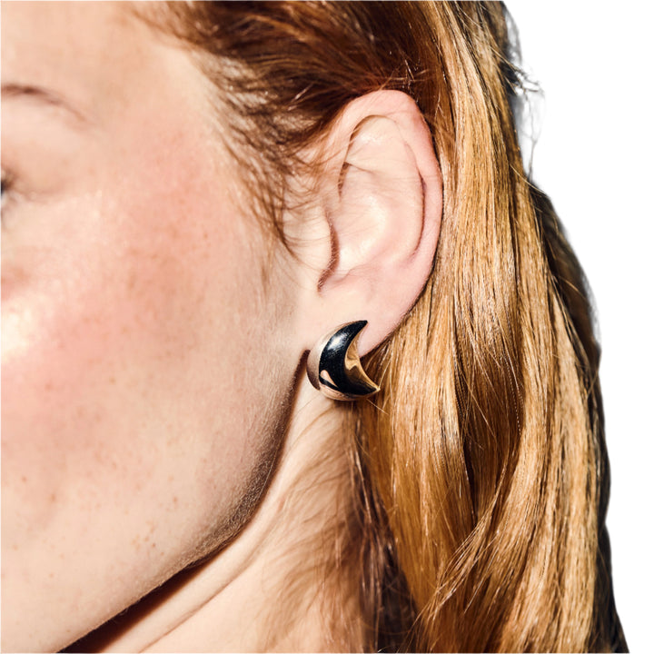These Statement Moon Stud Earrings by Carrie Elizabeth in silver plating are a mesmerizing addition to your jewelry collection. Inspired by the celestial beauty of the moon, these studs make a bold yet elegant statement, perfect for day-to-night transitions. A must-have for anyone looking to add a touch of cosmic magic to their wardrobe.