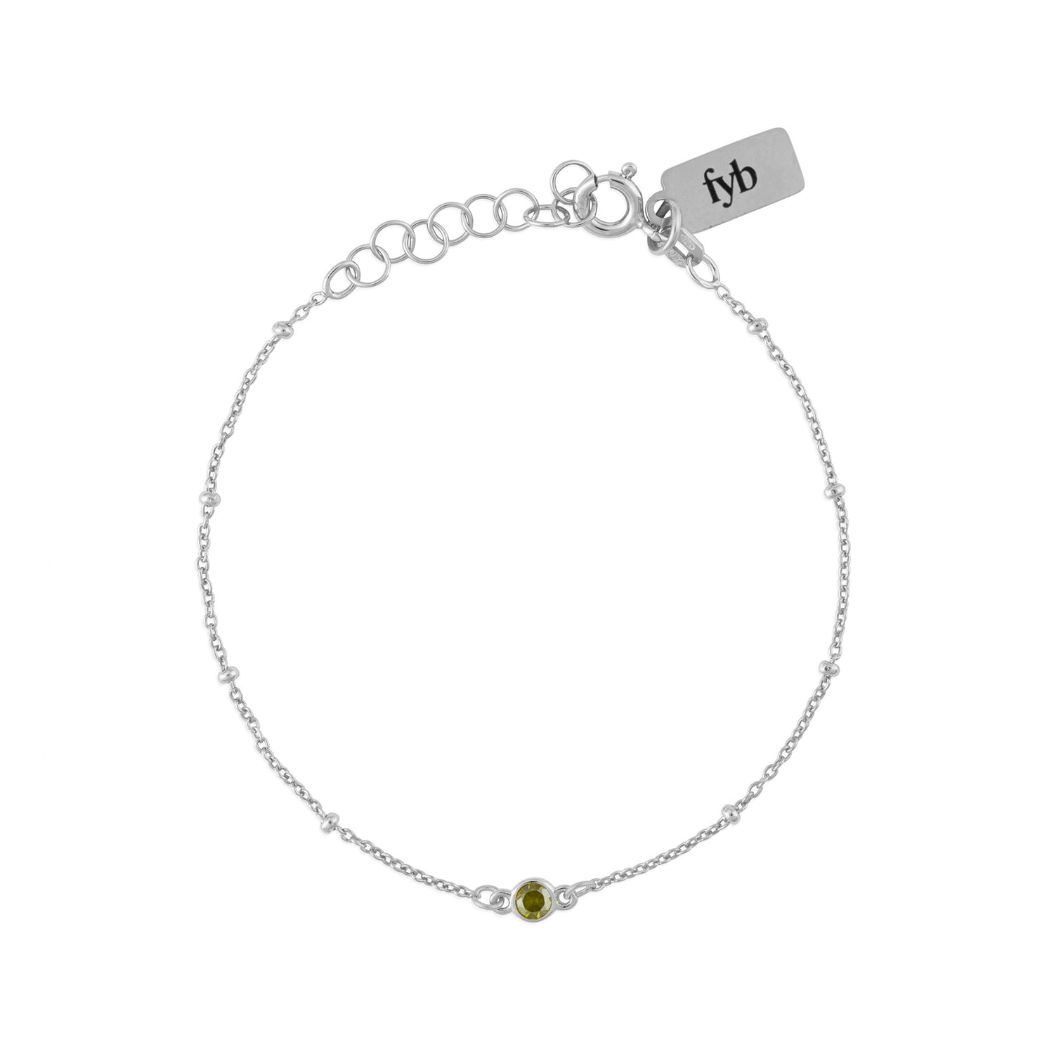 This August Birthstone Bracelet by fyb showcases a sparkling CZ inspired by peridot, known for its fresh and joyful vibe. Delicate yet impactful, it’s a beautiful reminder of growth and positivity.