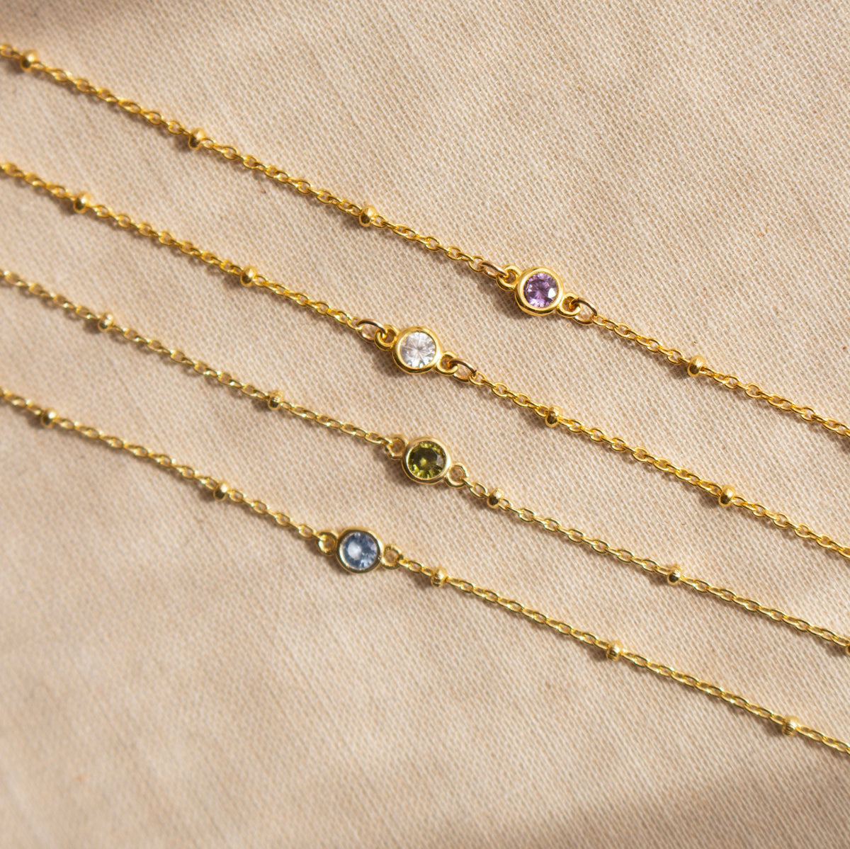 This August Birthstone Bracelet by fyb in gold radiates joy and new beginnings with a peridot-inspired CZ stone. Its golden shimmer and birthstone sparkle make it an ideal gift or personal treasure.