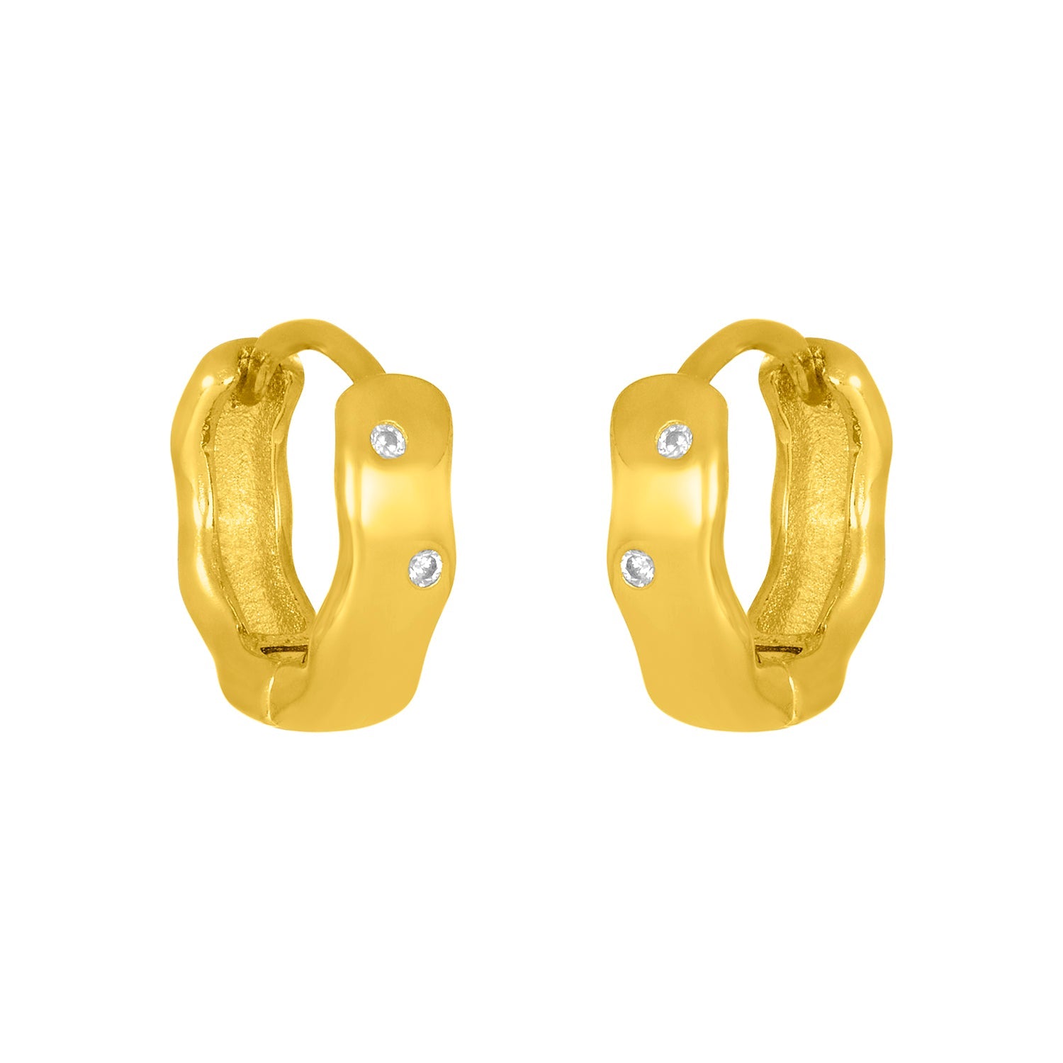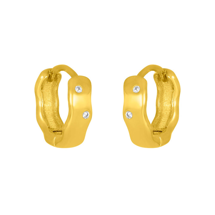 These Dottie Huggies by fyb offer a classic dose of sparkle with a refined edge. Embedded with cubic zirconia, they hug the earlobe snugly to provide all-day comfort and shine. Their timeless design makes them a go-to for layering or standalone shimmer.