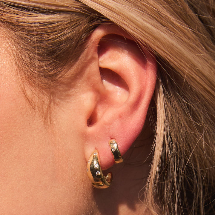 These Penelope Huggies by fyb deliver just the right amount of sparkle. With pavé-set CZ in a timeless hoop silhouette, they add subtle shine to any look — ideal for stacking or solo wear.