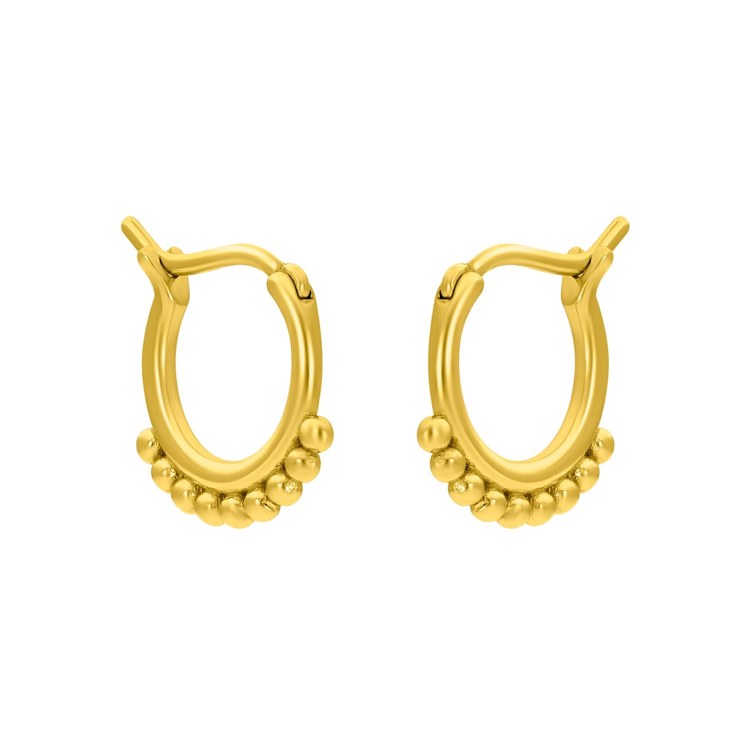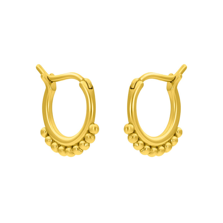 These Cosima Huggies by fyb offer a minimalist approach to effortless chic. Their smooth golden finish and lightweight feel make them a daily go-to — ideal for second piercings or stacking. Designed with comfort and timeless appeal in mind.