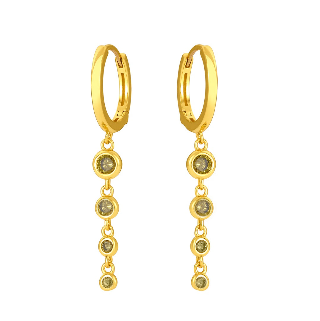 18k gold plated sterling silver with cubic zirconia. 14mm hoop diameter, 36mm length.