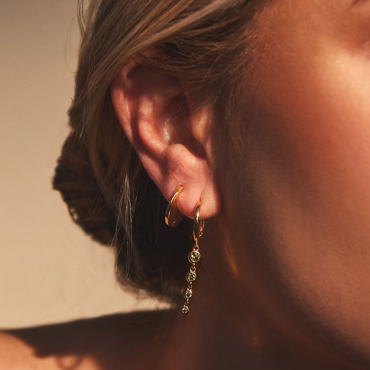 These Groove Earrings by fyb channel laid-back luxury with a nature-inspired palette. Created in collaboration with Ella Rose, the peridot-colored stones are a nod to her peaceful Catskills escape. Lightweight and full of movement, they bring summer energy year-round.