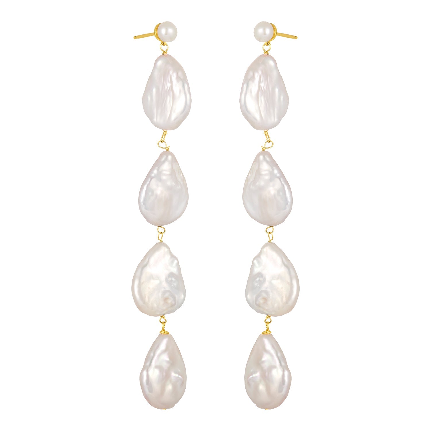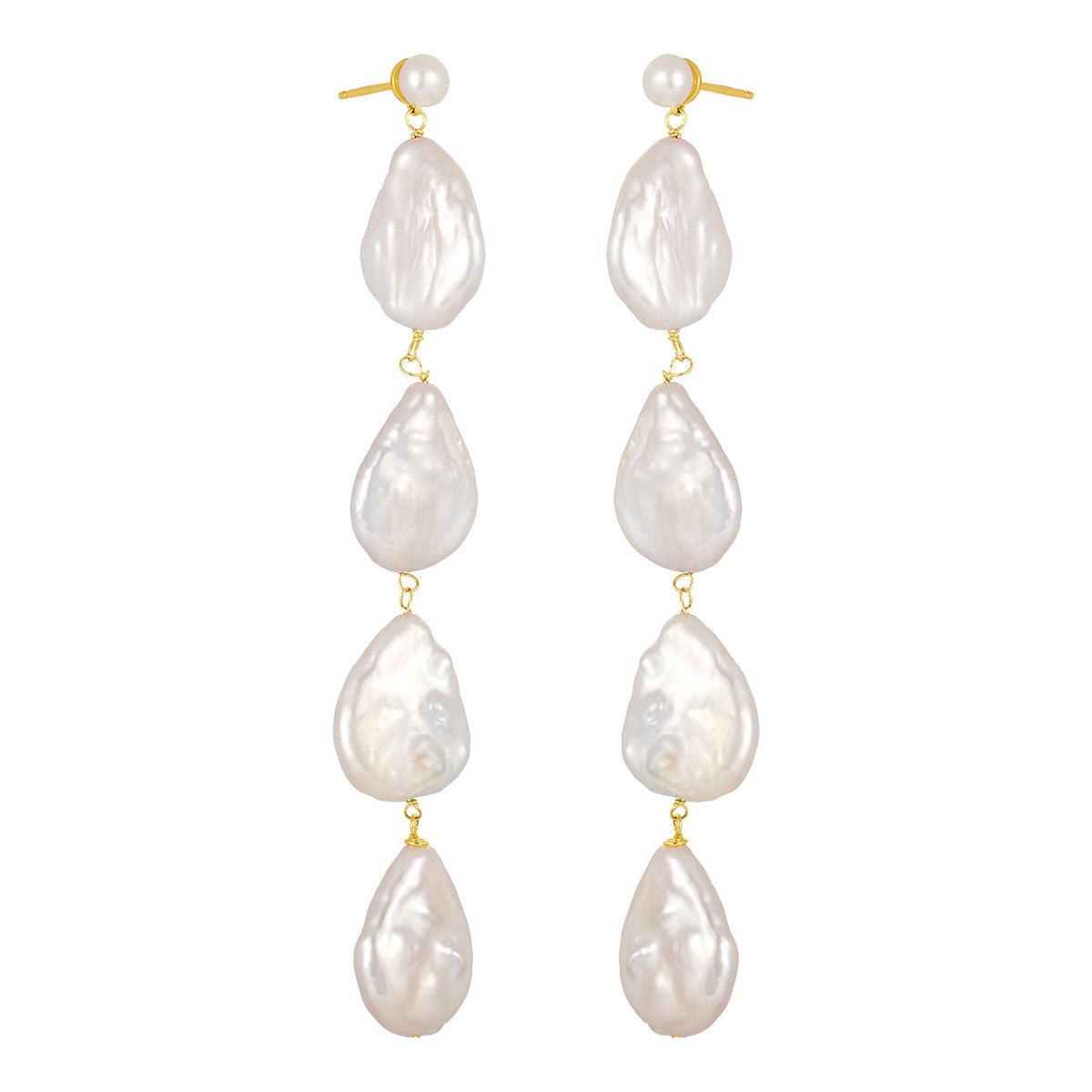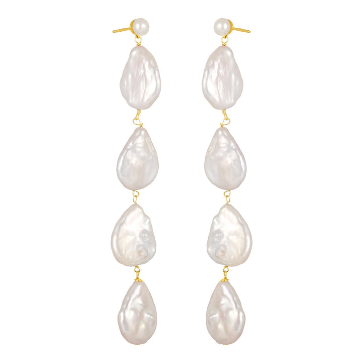 18k gold-plated, 925 sterling silver stud back. Freshwater pearls. Length: 3.75'.