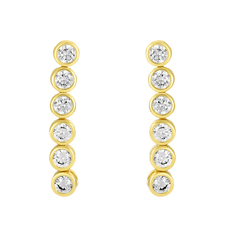 These Lennon Earrings Gold by fyb jewelry are a refined sparkle moment in an everyday silhouette. Featuring petite CZ stones arranged along a 1' gold drop, they create graceful movement while maintaining an understated finish. A soft shimmer for both casual and elevated occasions.
