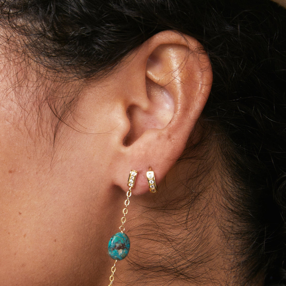 These Daphne Huggies Gold by fyb bring effortless elegance with a radiant twist. Designed for day-to-night wear, these gleaming hoops hug the ear just right, while the high-grade cubic zirconia adds a touch of sparkle. A refined choice for those who favor subtle luxury.
