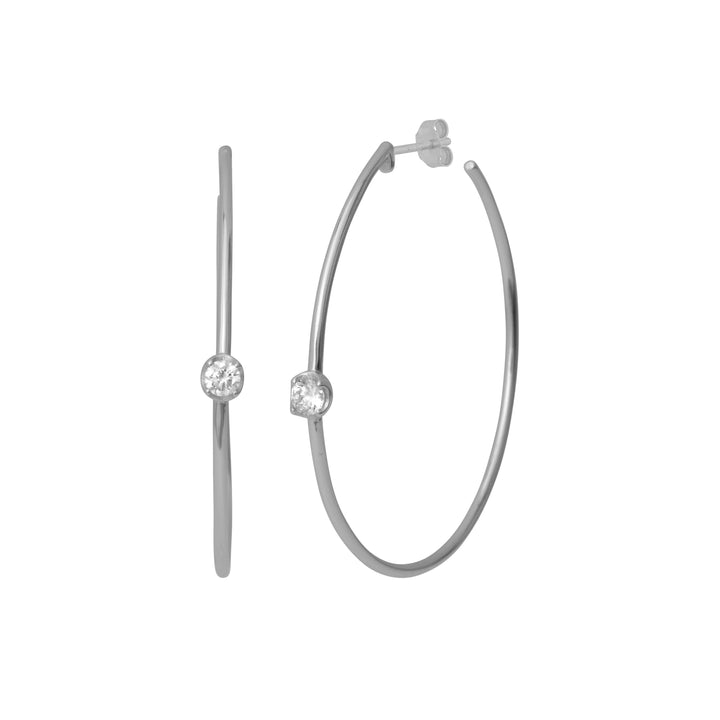 These Sabine Statement Hoops by FYB are bold yet sophisticated, designed to make a lasting impression. A single cubic zirconia accent lends a touch of sparkle to these oversized silver hoops, perfect for polished daywear or elevated evening looks.