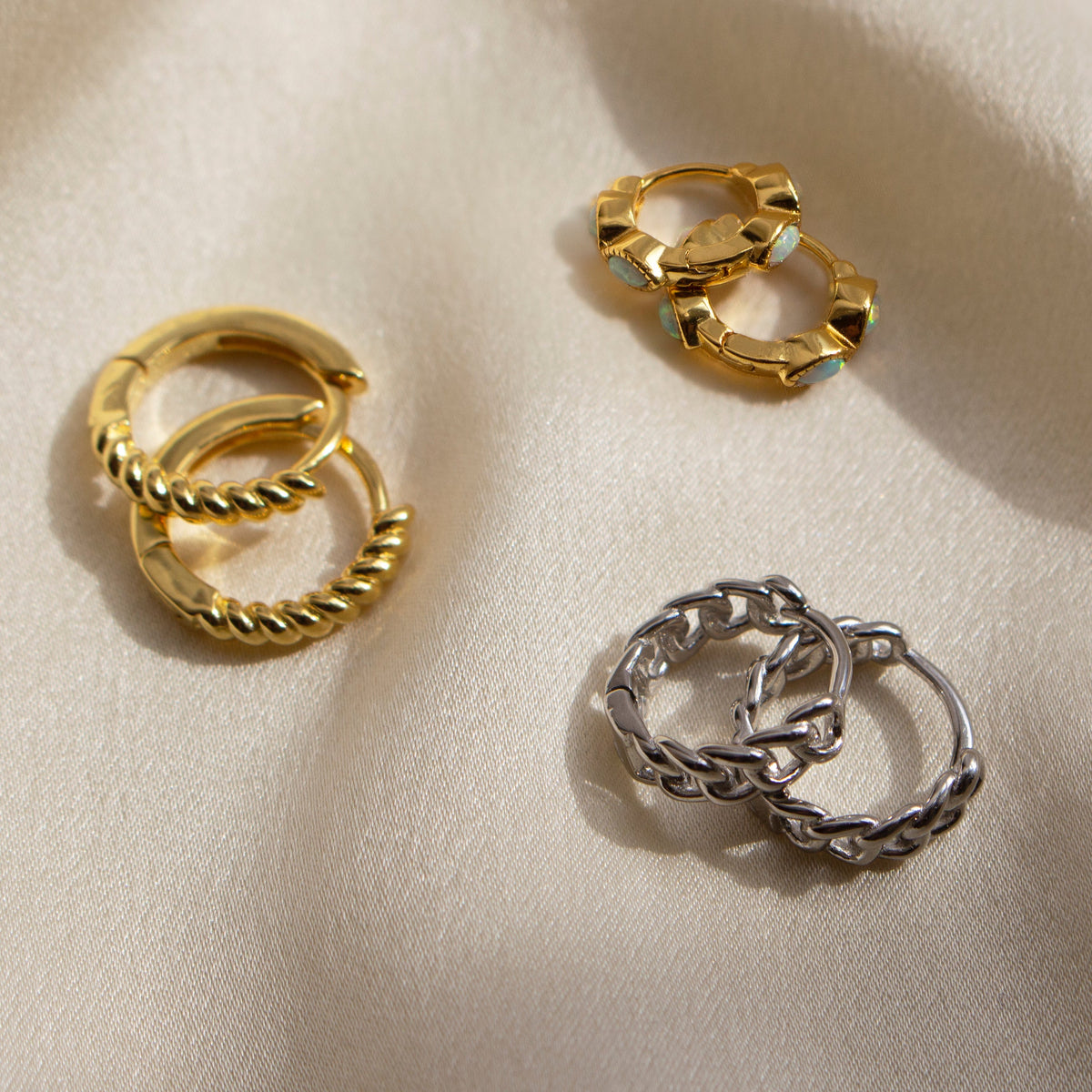 These Corinne Huggies by fyb offer a modern twist on a classic silhouette. Chain-link detailing adds an edge to their sleek profile, making them perfect for everyday cool or stacked drama.