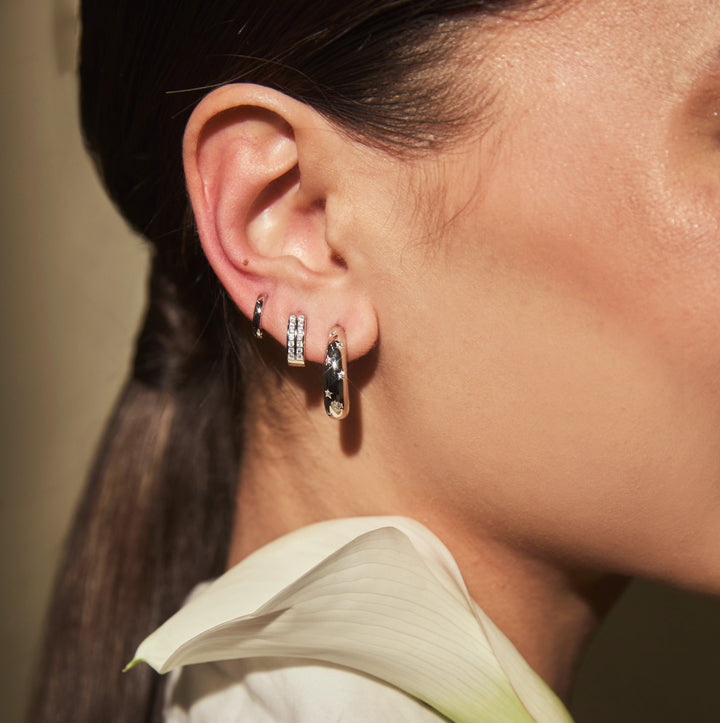 These Petite Chloe Huggies by fyb are dainty and playful, perfect for stacking or adding a subtle sparkle to multiple piercings. Their petite size makes them endlessly versatile while maintaining a modern edge. A must-have mini that feels effortlessly chic.