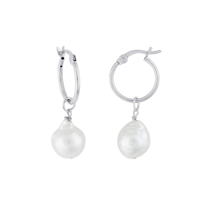 Sterling silver hoops. Freshwater pearl dangles. Nickel-free. Diameter: 1/2'. Comes in signature cloth pouch.