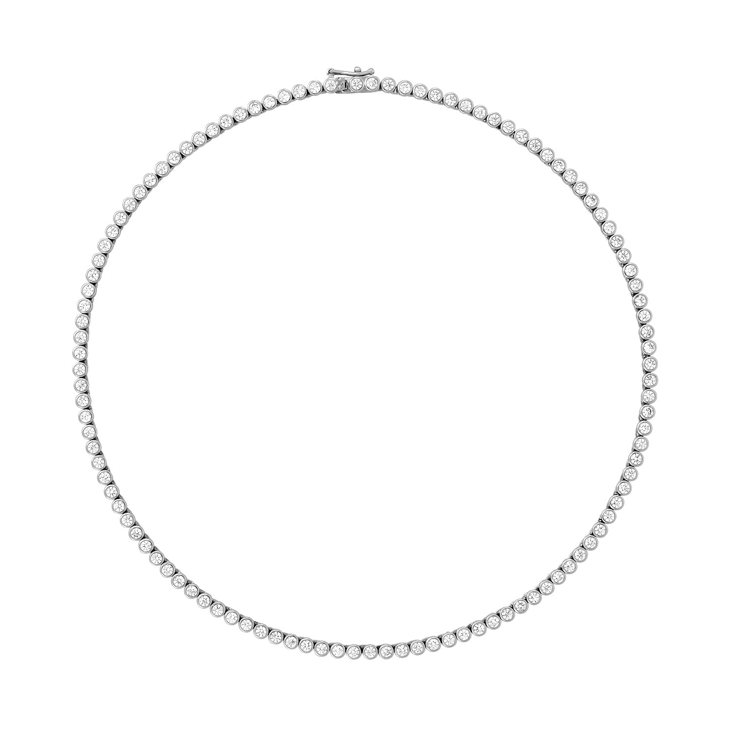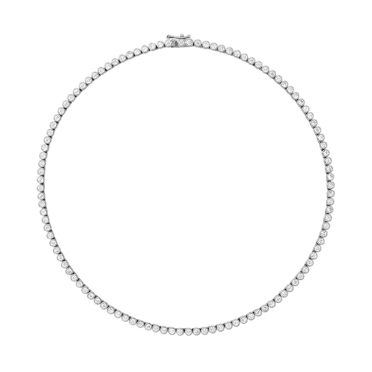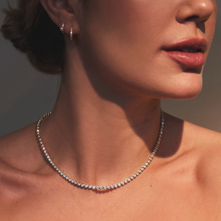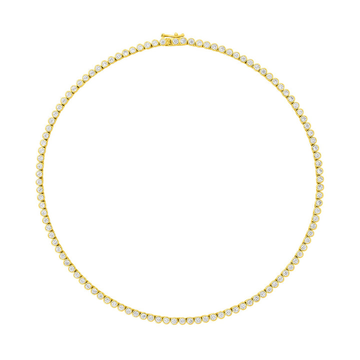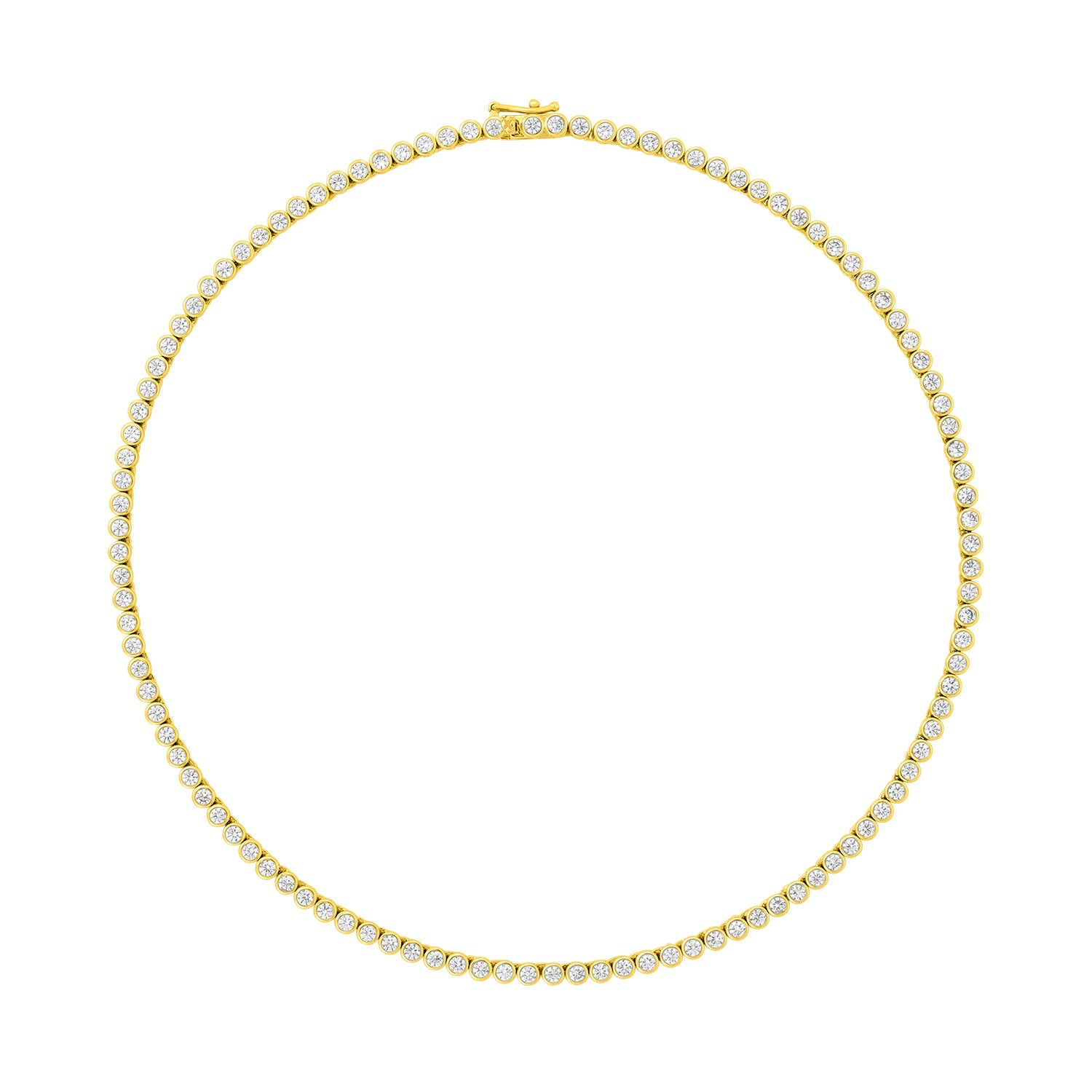 Style Notes: This Adeline Tennis Necklace by fyb offers timeless brilliance in a collarbone-skimming silhouette. Featuring a full row of dazzling CZ stones on rich gold vermeil, it’s made to shine solo or anchor your layering look.