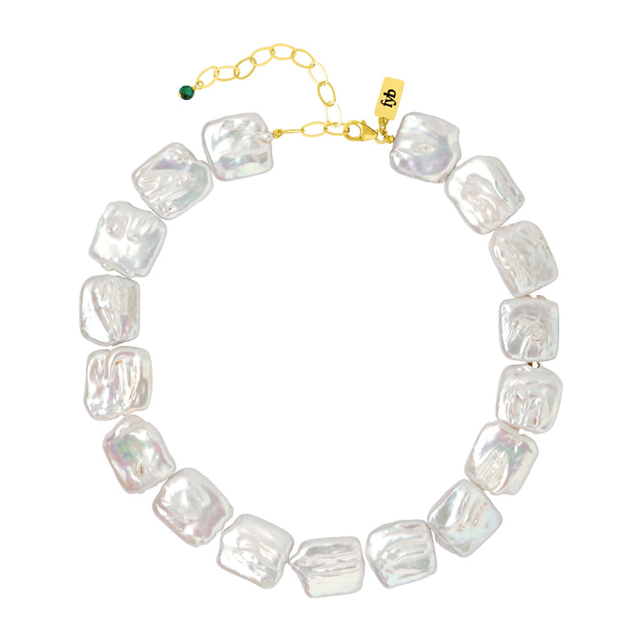 This Aurora Pearl Choker by fyb is a bold expression of timeless beauty with a modern twist. Featuring hand-knotted freshwater pearls and a delicate turquoise detail, it radiates effortless elegance. The gold-plated extender ensures versatility and comfort, perfect for layering or statement wear.