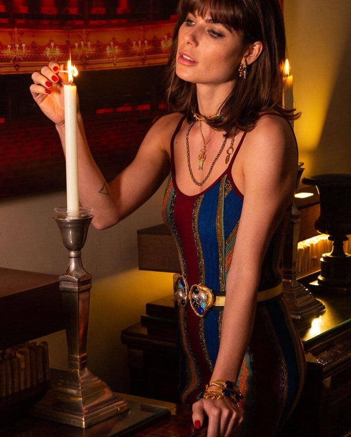 Entrusted with iconic designer Sonia Petroff's archive upon her passing, Maria Leoni-Sceti felt compelled to revive the vibrant and opulent pieces. Sonia's legacy, rooted in confidence and rebellion, finds new life through Maria's modern touch. The jewelry embodies a confident, feminine style, updated with a contemporary edge while retaining the vibrancy and joy of earlier times. Handmade in Tuscany, the brand prioritizes ethical production and sustainability. Style notes: These unique, bespoke earrings carry streamlined modernity. A tribute to symbolism, eyes represent a gateway into the soul. Bezel-set simulated blue sapphire cabochon within a tapering gold mount.Price: Please note price may vary due to exchange rate differences or shipping, duties and taxes. Price may also vary with materials choice. Final price is calculated at checkout at the designer's website. Materials: 24k gold overlay with simulated sapphire.