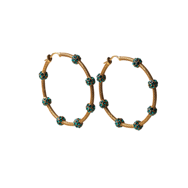 Crafted in brass with a 24-carat gold overlay. Adorned with Swarovski crystals that reflect light beautifully. Lightweight hoop design ensures comfort and wearability.