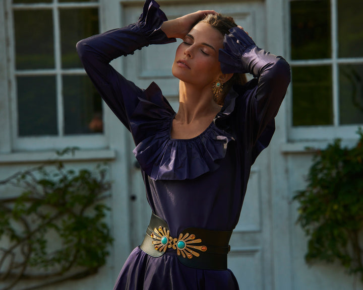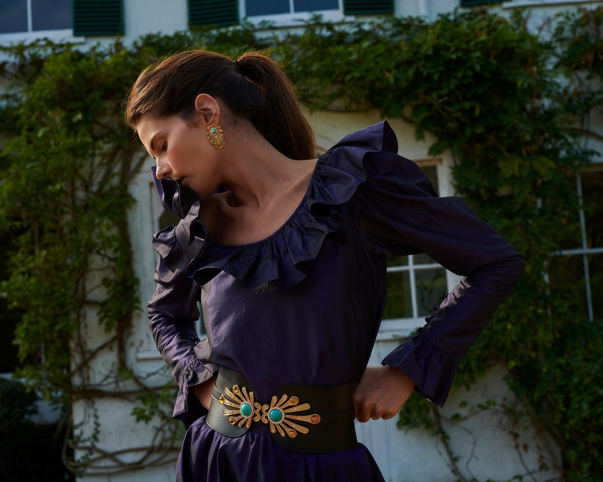Entrusted with iconic designer Sonia Petroff's archive upon her passing, Maria Leoni-Sceti felt compelled to revive the vibrant and opulent pieces. Sonia's legacy, rooted in confidence and rebellion, finds new life through Maria's modern touch. The jewelry embodies a confident, feminine style, updated with a contemporary edge while retaining the vibrancy and joy of earlier times. Handmade in Tuscany, the brand prioritizes ethical production and sustainability.