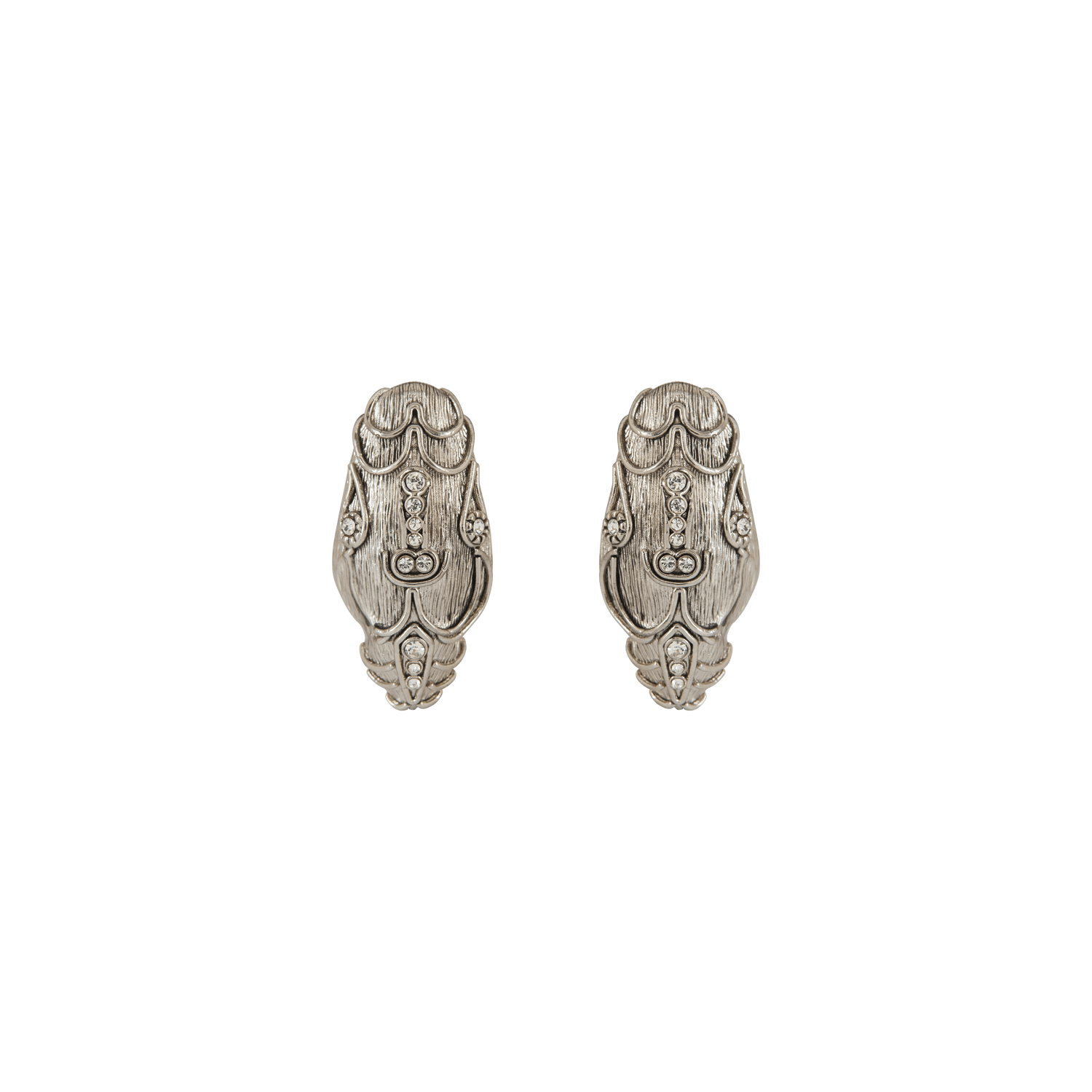 Crafted from silver palladium and embellished with Swarovski diamonds for a refined sparkle. Designed with a clip-on setting for effortless wear and versatility. Meticulously handcrafted to reflect Sonia Petroff’s attention to detail and artistry.