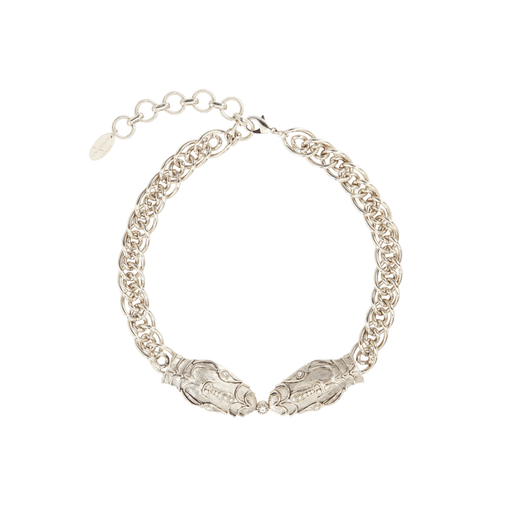 This Serpente Necklace by Sonia Petroff, part of the Enchanted Garden collection for Autumn/Winter 2024, captures the timeless allure of the serpent motif, a symbol of power and transformation in ancient art. Its sleek and sophisticated design embodies vintage elegance while offering a bold statement. Handcrafted in Tuscany, it is a testament to Sonia Petroff’s dedication to creating exquisite and meaningful jewelry.