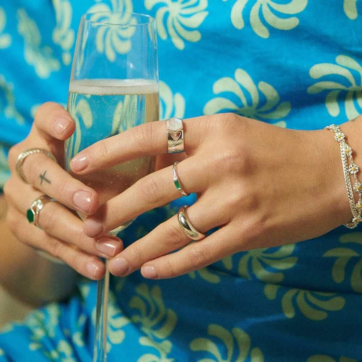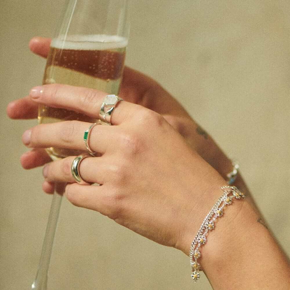Daisy London is a British jewelry brand renowned for its modern and minimalist designs. Founded in 2009 by Ruth Bewsey, Daisy has gained popularity for its symbolic pieces that blend simplicity with meaningfulness. Favoring timelessness over trends, the brand's high-quality jewelry is designed to be worn daily and cherished for years to come. Ruth aspires to create jewelry that will make you feel unapologetically yourself. Every piece reflects effortless style with a touch of personal significance.Style notes: A stone for new beginnings, this Bold Moonstone Band Ring is just the thing to give your jewellery box a new lease of life. For the big day and the everyday, layer with contrasting stacking bands for a look to fall for.Price: Please note price may vary due to exchange rate differences or shipping, duties and taxes. Price may also vary with materials choice. Final price is calculated at checkout at the designer's website. Materials: Recycled silver with moonstone. Dimensions: Gemstone measures: 10.2 x 8.8 x 3.5mm. Band thickness: 0.8mm.