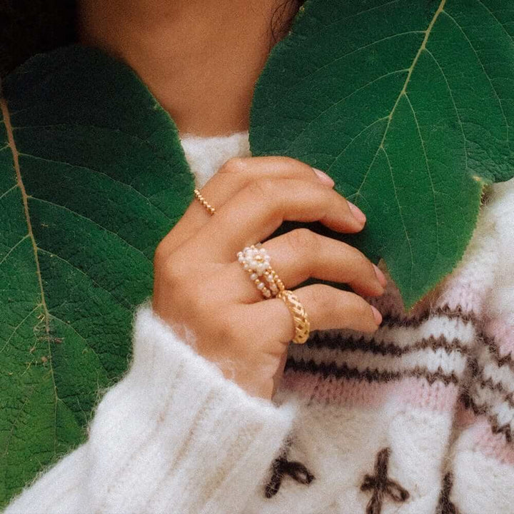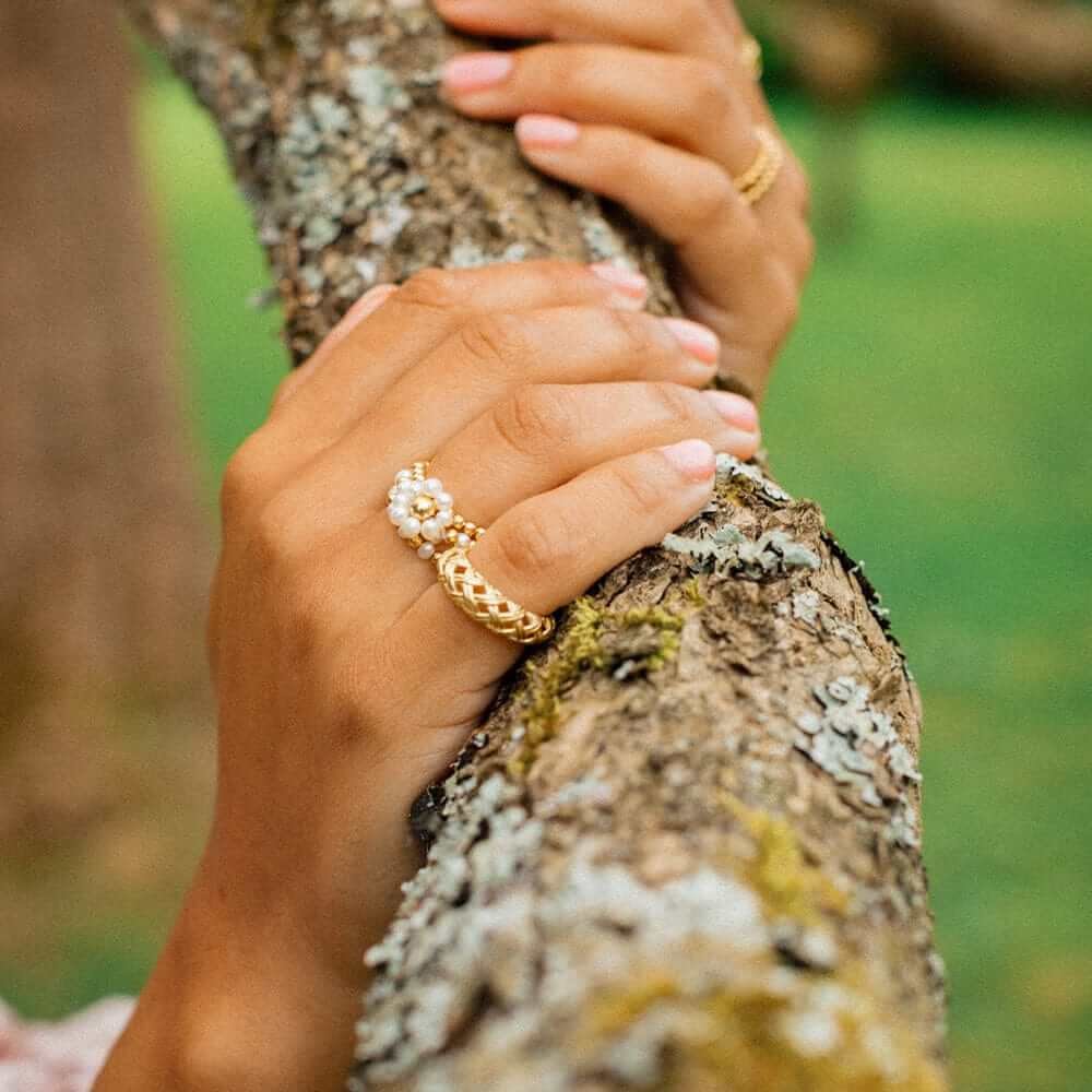 Daisy London is a British jewelry brand renowned for its modern and minimalist designs. Founded in 2009 by Ruth Bewsey, Daisy has gained popularity for its symbolic pieces that blend simplicity with meaningfulness. Favoring timelessness over trends, the brand's high-quality jewelry is designed to be worn daily and cherished for years to come. Ruth aspires to create jewelry that will make you feel unapologetically yourself. Every piece reflects effortless style with a touch of personal significance.Style notes: A firm favourite in the Shrimps x Daisy HQ's, this loose bead and pearl flower ring is as icnonic as this collaboration. Made from 100% recycled silver, 18ct gold plate and real mini pearls, this ring is the big sister to the other loose bead rings and she's a bit of a show off.Price: Please note price may vary due to exchange rate differences or shipping, duties and taxes. Price may also vary with materials choice. Final price is calculated at checkout at the designer's website. Materials: 18k gold plated silver with freshwater pearls. Dimensions: Bead thickness: 2.5mm. Daisy flower measures: 3mm x 10mm.