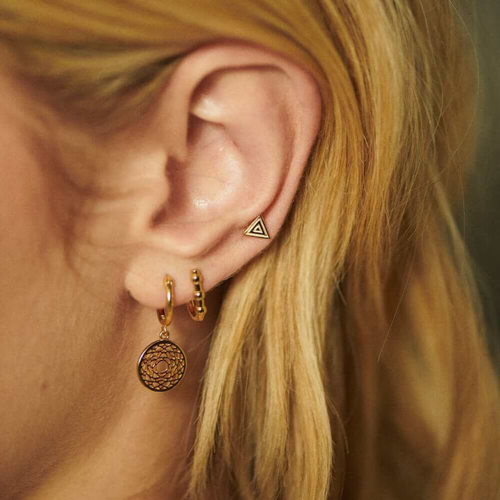 Daisy London is a British jewelry brand renowned for its modern and minimalist designs. Founded in 2009 by Ruth Bewsey, Daisy has gained popularity for its symbolic pieces that blend simplicity with meaningfulness. Favoring timelessness over trends, the brand's high-quality jewelry is designed to be worn daily and cherished for years to come. Ruth aspires to create jewelry that will make you feel unapologetically yourself. Every piece reflects effortless style with a touch of personal significance.Style notes: Choose the Chakra symbol that best represents your inner self. Made from 18ct gold plated silver, featuring an intricate charm on a fine hoop.Price: Please note price may vary due to exchange rate differences or shipping, duties and taxes. Price may also vary with materials choice. Final price is calculated at checkout at the designer's website. Materials: 18k gold plated silver. Dimensions: Hoop external diameter: 12mm. Hoop internal diameter: 9mm.