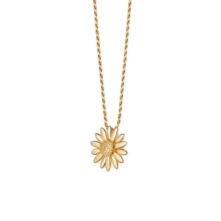 18k gold plated silver. Dimensions: Daisy measures: 15mm. Chain length: 18'