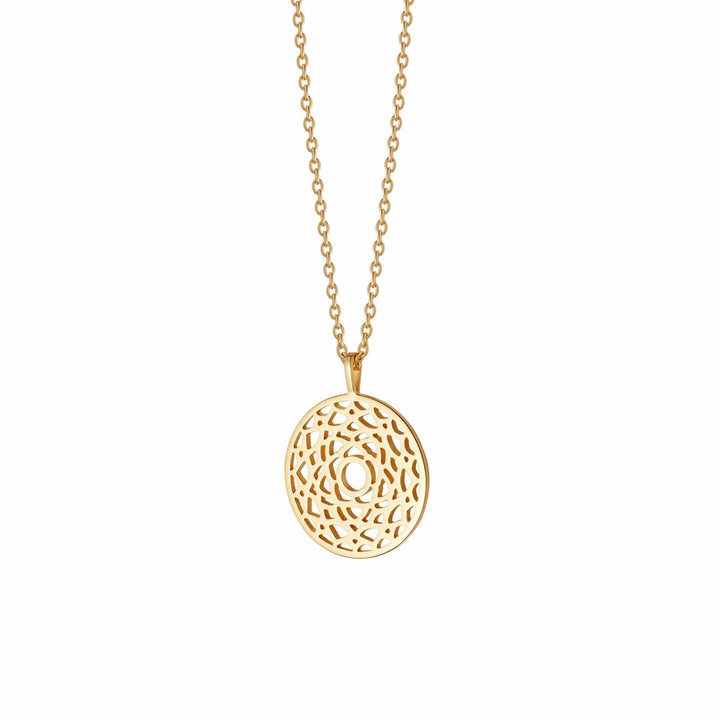 18k gold plated silver. Dimensions: Chakra symbol measures: 20mm. Chain length: adjustable to 16'/17'