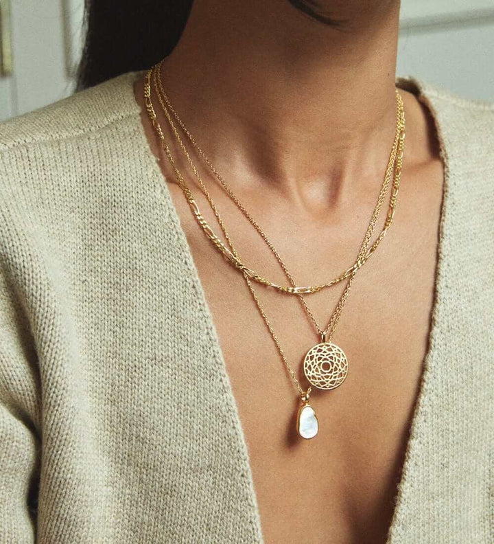 Daisy London is a British jewelry brand renowned for its modern and minimalist designs. Founded in 2009 by Ruth Bewsey, Daisy has gained popularity for its symbolic pieces that blend simplicity with meaningfulness. Favoring timelessness over trends, the brand's high-quality jewelry is designed to be worn daily and cherished for years to come. Ruth aspires to create jewelry that will make you feel unapologetically yourself. Every piece reflects effortless style with a touch of personal significance.Style notes: Choose the Chakra symbol that best represents your inner self. This delicate necklace comes with adjustable links to customise the length of your chain.Price: Please note price may vary due to exchange rate differences or shipping, duties and taxes. Price may also vary with materials choice. Final price is calculated at checkout at the designer's website. Materials: 18k gold plated silver. Dimensions: Chakra symbol measures: 20mm. Chain length: adjustable to 16'/17'