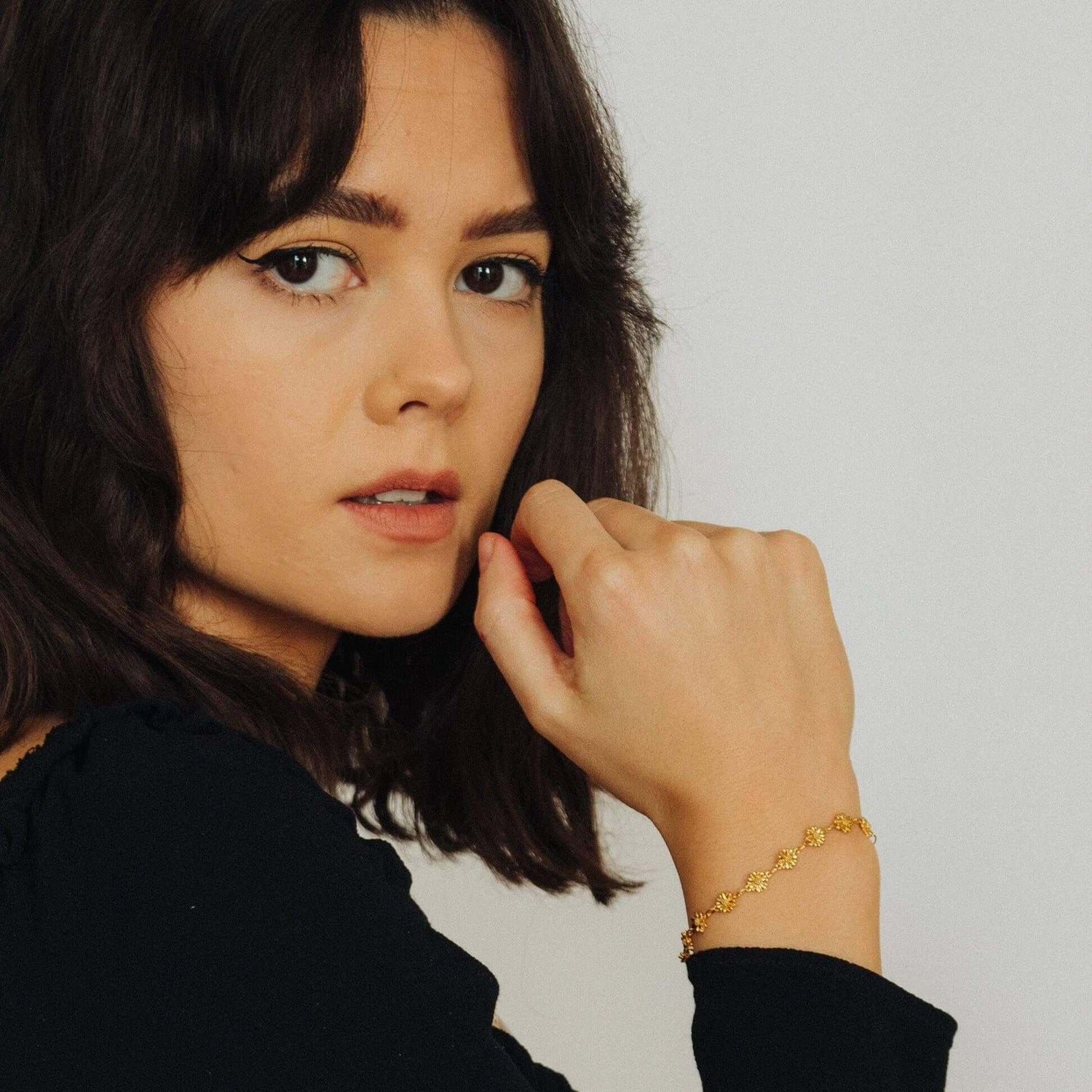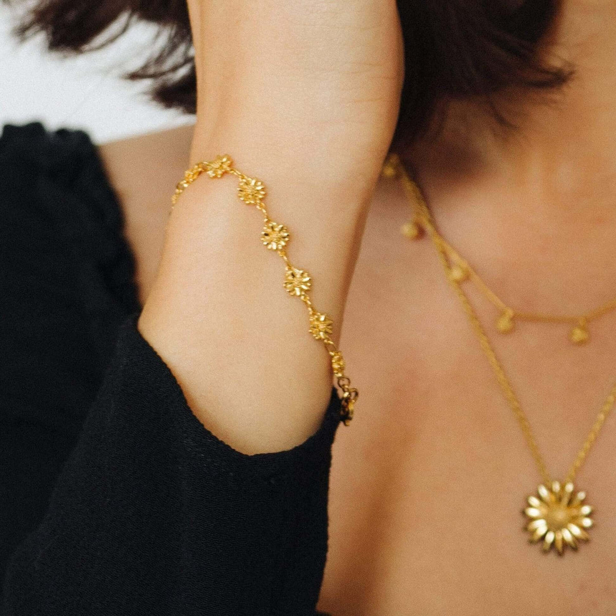 18k gold plated silver. Dimensions: Daisies measure: 6mm. Chain length: 190mm.