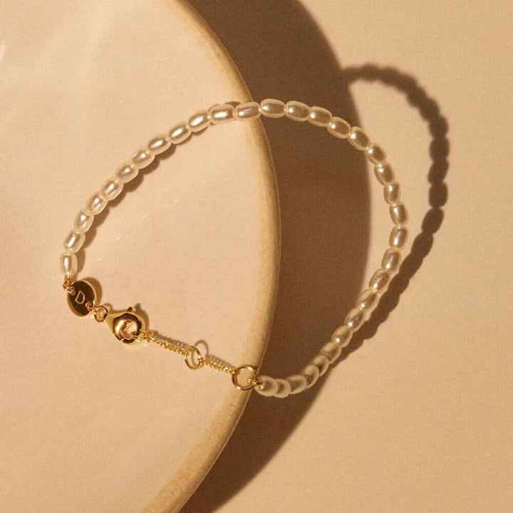 Daisy London is a British jewelry brand renowned for its modern and minimalist designs. Founded in 2009 by Ruth Bewsey, Daisy has gained popularity for its symbolic pieces that blend simplicity with meaningfulness. Favoring timelessness over trends, the brand's high-quality jewelry is designed to be worn daily and cherished for years to come. Ruth aspires to create jewelry that will make you feel unapologetically yourself. Every piece reflects effortless style with a touch of personal significance.Style notes: Because you can never have too many pearls. The perfect base for layering amoungst chunky chains, this timeless bracelet is a jewellery staple everyone needs in their rotation.Price: Please note price may vary due to exchange rate differences or shipping, duties and taxes. Price may also vary with materials choice. Final price is calculated at checkout at the designer's website. Materials: 18k gold plated silver with pearls. Dimensions: Chain length: 170/180/190mm