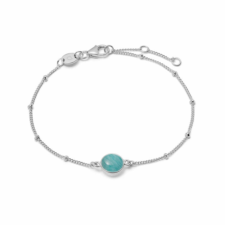 Daisy London is a British jewelry brand renowned for its modern and minimalist designs. Founded in 2009 by Ruth Bewsey, Daisy has gained popularity for its symbolic pieces that blend simplicity with meaningfulness. Favoring timelessness over trends, the brand's high-quality jewelry is designed to be worn daily and cherished for years to come. Ruth aspires to create jewelry that will make you feel unapologetically yourself. Every piece reflects effortless style with a touch of personal significance.Style notes: Let your jewellery do the talking. Featuring a round gemstone set on an adjustable bobble chain this bracelet will add a touch of colour and meaning to your jewellery box. Price: Please note price may vary due to exchange rate differences or shipping, duties and taxes. Price may also vary with materials choice. Final price is calculated at checkout at the designer's website. Materials: Recycled silver with amazonite. Dimensions: Chain length: 160mm (extendable by 26mm).