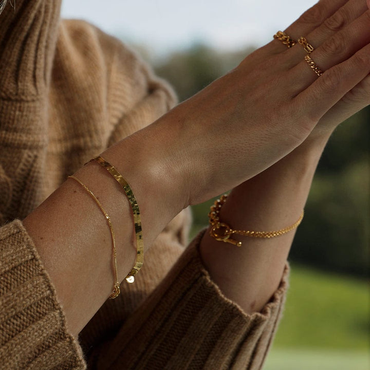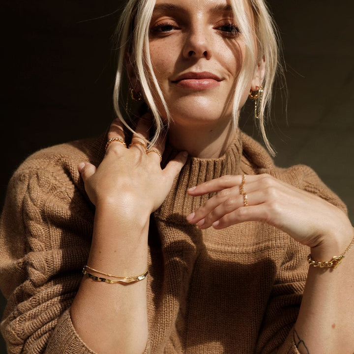 Bracelets at their best. The 'Forever Wavy' layering set is subtle yet unmissable and crafted in 18ct gold plate. Don't forget to roll up your sleeves and let the fruits from your jewellery box shine bright.