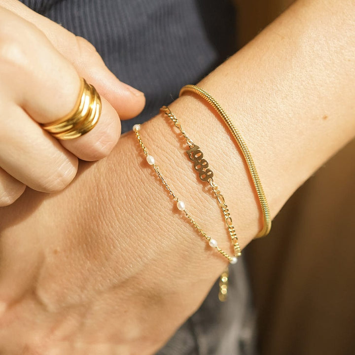 Our bestselling nostalgic necklace now in bracelet form. Pay ode to someone or proudly sport your birth year, this is a fresh addition to any stack. Featuring our signature figaro chain, made in 100% recycled silver with 18ct gold plate.