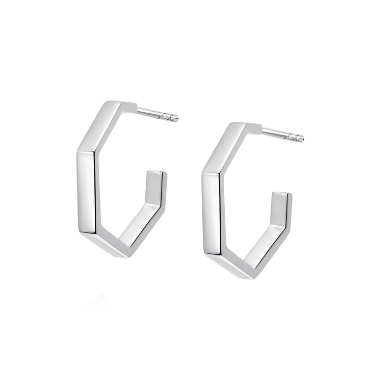 Fine Hexagon Hoop Earrings 925 Sterling Silver