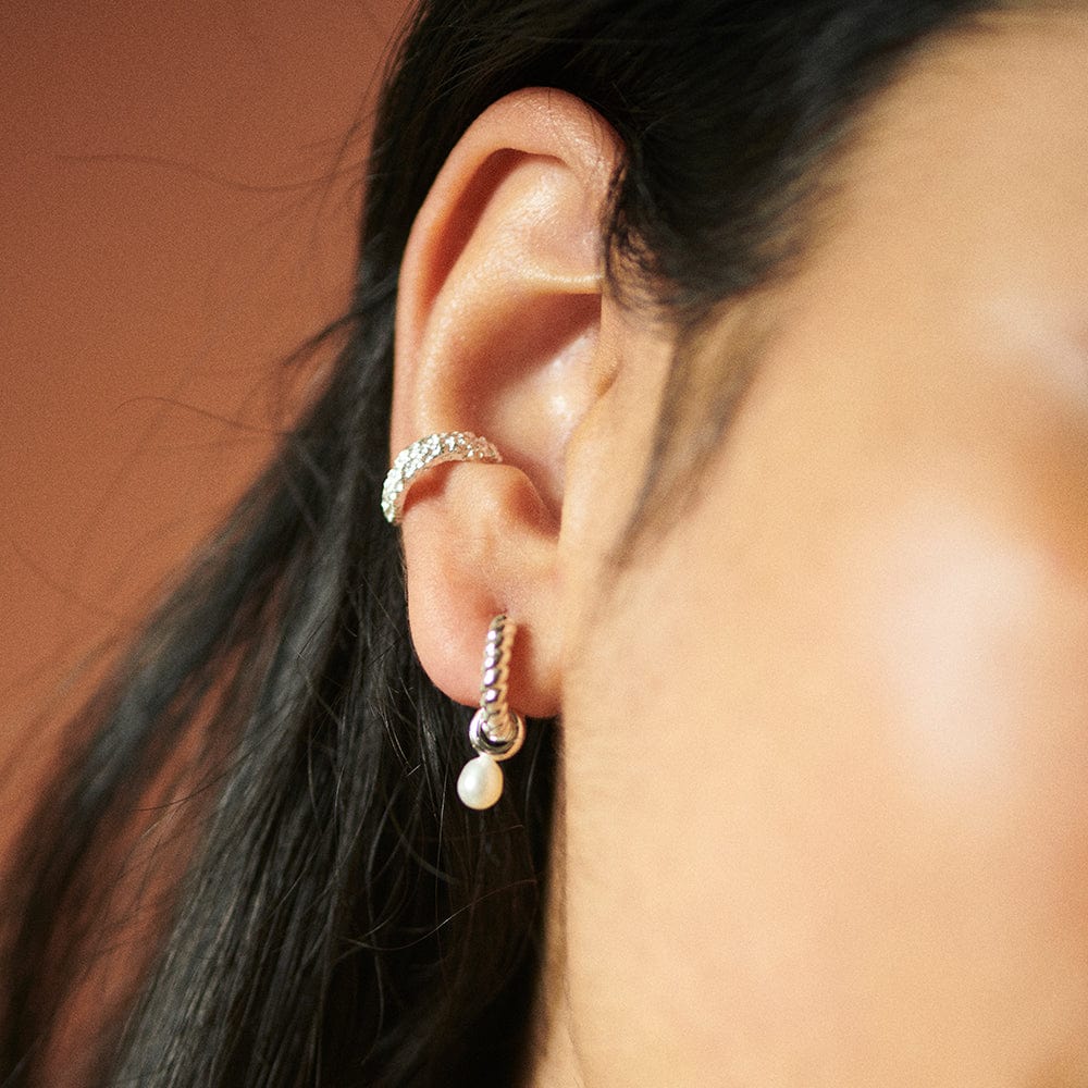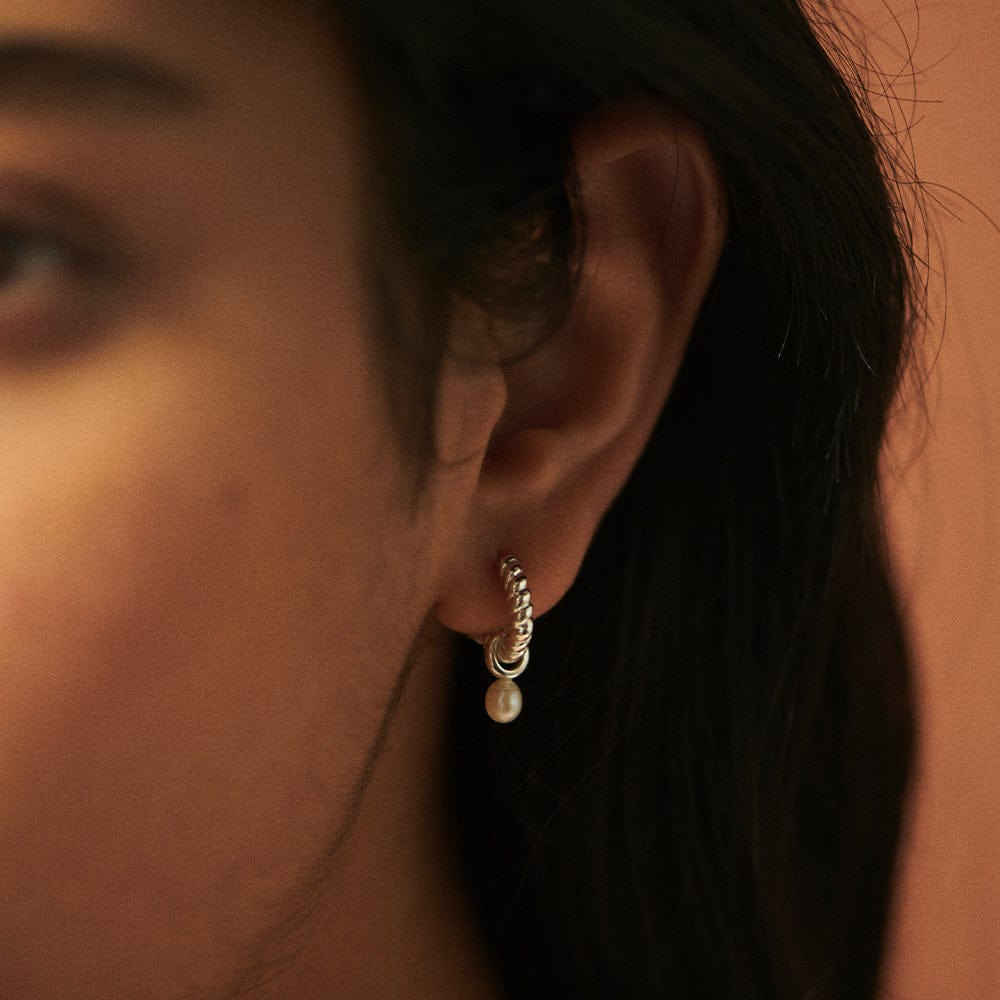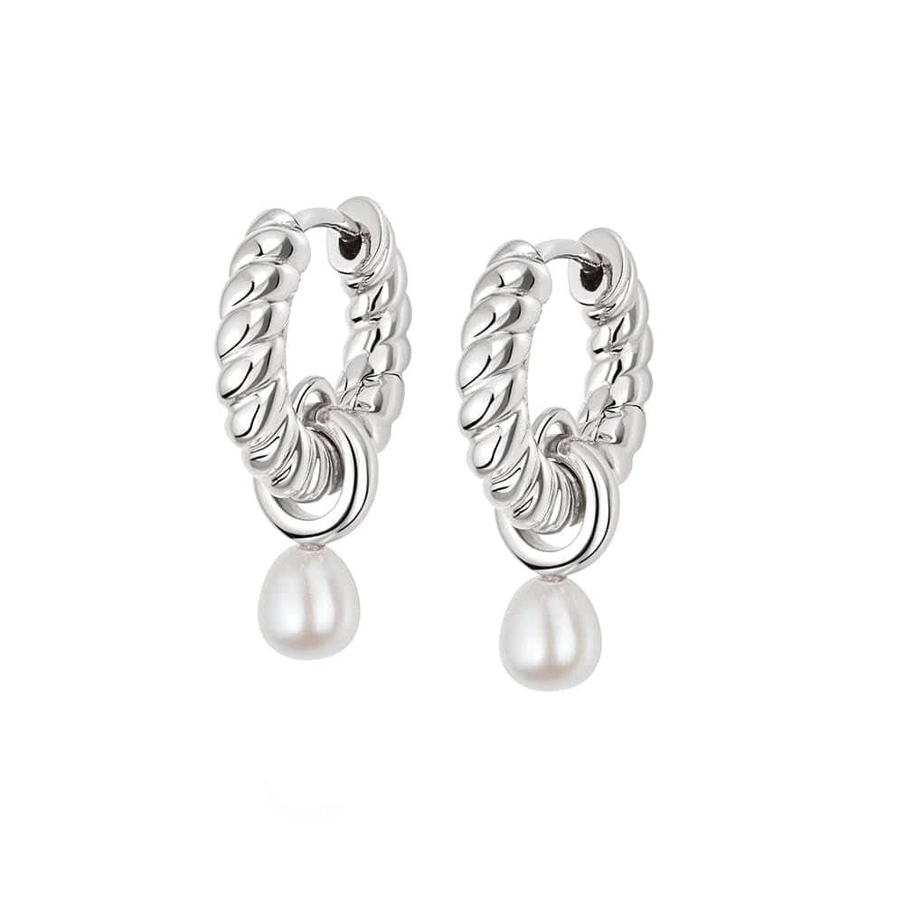 Rope Pearl Huggie Earrings 925 Sterling Silver