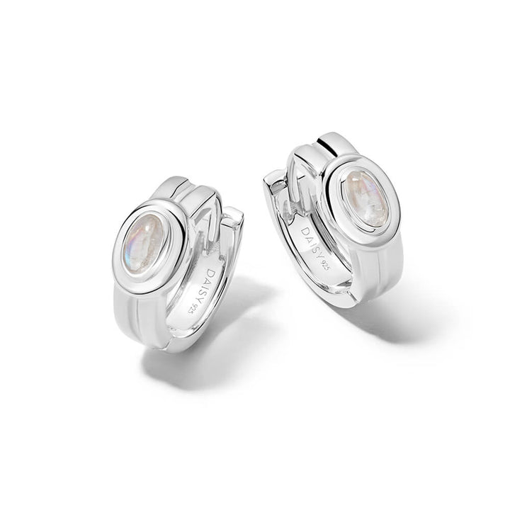 Moonstone Huggie Hoop Earrings Sterling Silver
