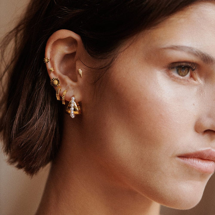 Add some cosmic bling to your stack with these 18ct gold plated earrings. Pair with the moonstone huggies for that all over celestial glow, or wear alone for a less-is-more moment.