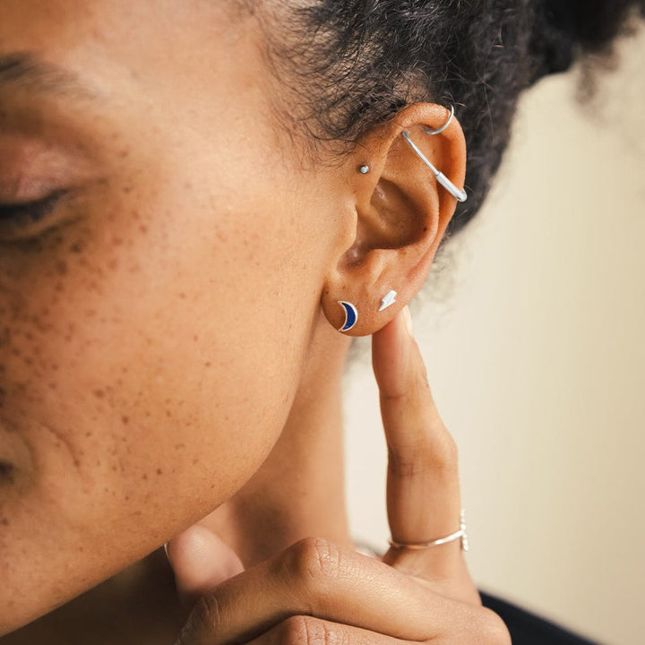The coup de foudre just waiting to happen. These lightning bolt studs are made with 100% recycled sterling silver, and will make the perfect striking addition to any stack.